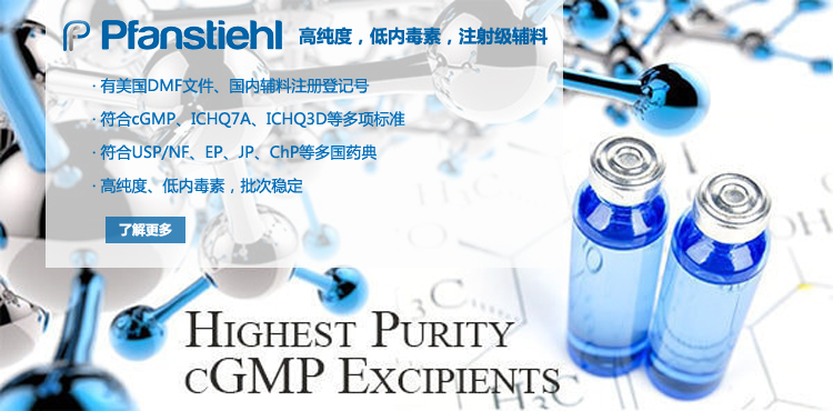 “熱烈祝賀Pfanstiehl的注射級甘氨酸Glycine(G-140)喜獲CDE登記號F20250000403, 這是Pfanstiehl產品獲得的第18個CDE登記號!”甘氨酸在醫藥輔料制劑中應用廣泛,, 可作為緩沖劑,增溶劑,穩定劑等,具有諸多優勢。Pfanstiehl秉承一貫高品質理念,為滿足全球生物制藥行業對于高品質甘氨酸的需求,隆重推出的注射級甘氨酸Glycine (G-140), 具有超高純度,超低內毒素,超低金屬殘留的特點,單獨檢測29種金屬離子,并且新增DNA,RNA,DNA酶,RNA酶和脂肪酶,亞硝酸鹽等多項質量指標的檢測,符合多國藥典規定(USP, EP, BP, JPE, ChP),可用于生物治療性藥物和疫苗的生產。產品信息:· 產品名稱:Glycine, High Purity, Low Endotoxin, Low Metals, USP, EP, BP, JPE, ChP (G-140)· 中文名稱:甘氨酸· 分子式:C2H5NO2· 分子量:75.07 g / mol· CAS號:56-40-6· 產品貨號:G-140產品特點: · 超高純度,超低內毒素,超低微生物含量,超低金屬雜質殘留· 質量指標新增DNA,RNA,DNA酶,RNA酶,脂肪酶和亞硝酸鹽檢測· 符合多國藥典:USP, EP, BP, JPE, ChP· 符合ICH Q3D標準· 符合GMP標準· 已獲DMF和CDE登記號 產品應用:· 緩沖劑· 穩定劑· 增溶劑如果您對Pfanstiehl注射級別Glycine G-140感興趣,歡迎聯系Pfanstiehl 中國區代理商北京西美杰科技有限公司獲得如下詳細的產品概況說明文件和測試樣品。Pfanstiehl Inc.最新產品系列如下,歡迎聯系北京西美杰科技有限公司獲取100g裝免費樣品。北京西美杰科技有限公司為Pfanstiehl中國代理,為客戶提供完善的技術支持與售后服務。歡迎撥打西美杰客服電話400-050-4006或者登陸網站www_xmjsci_com.gaslqy.com了解更多信息。 更多>